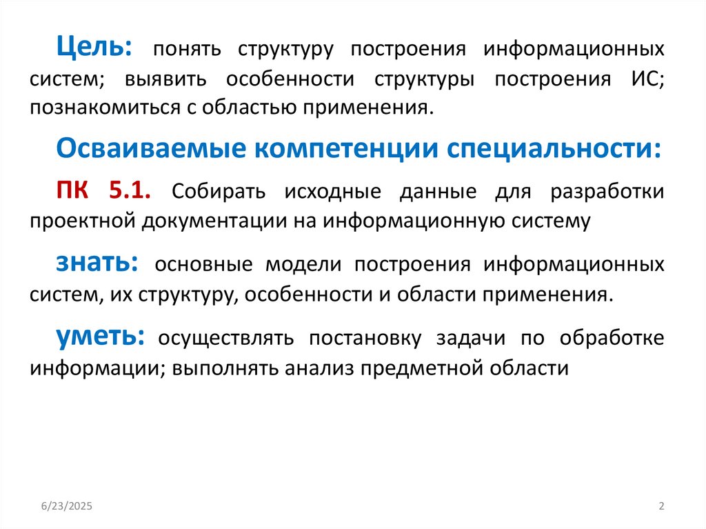 Цель: понять структуру построения информационныхсистем; выявить особенности структуры построения ИС;