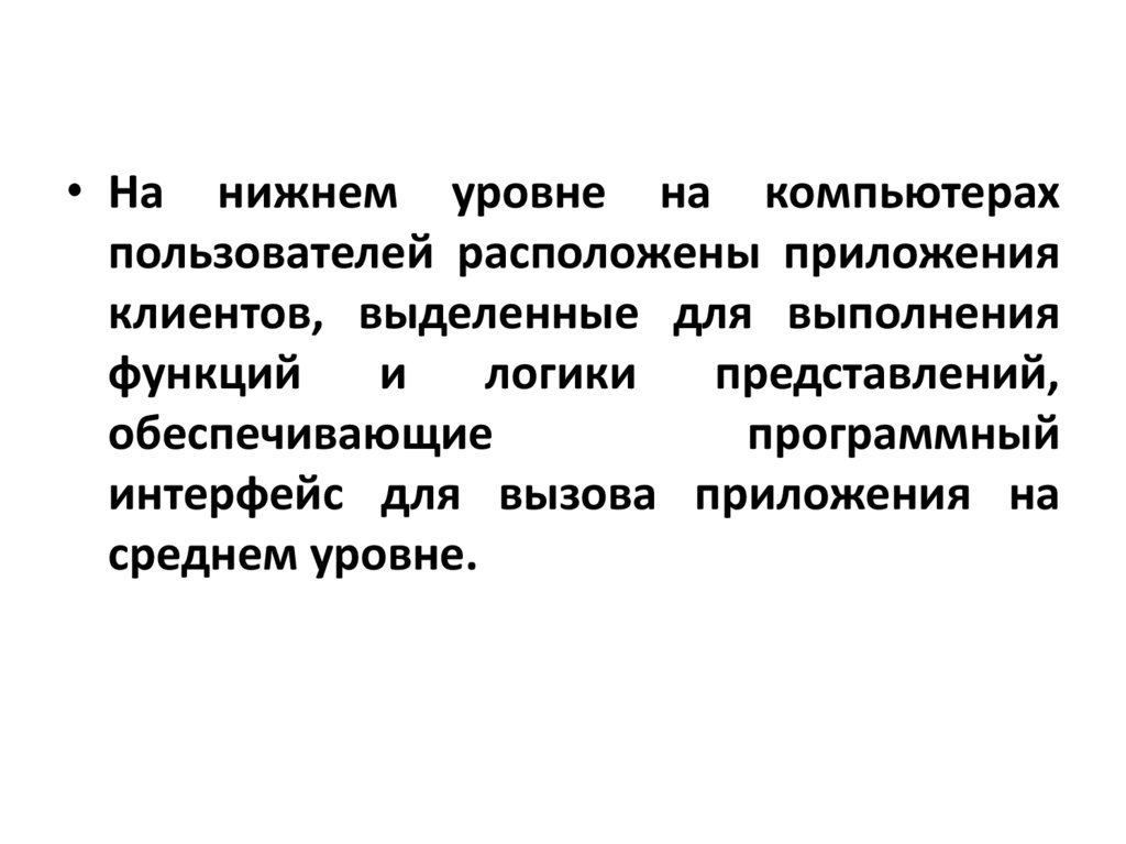 • На нижнем уровне на компьютерахпользователей расположены приложения