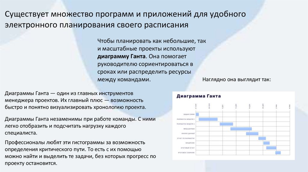 Диаграммы Ганта незаменимы при работе команды. С ними