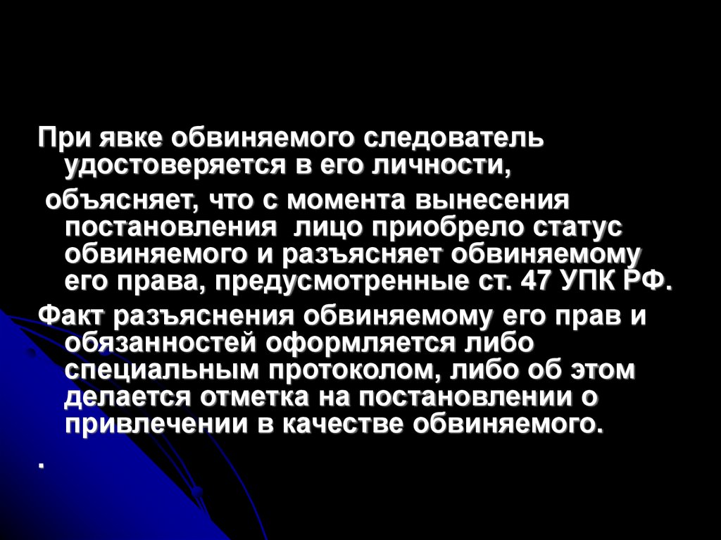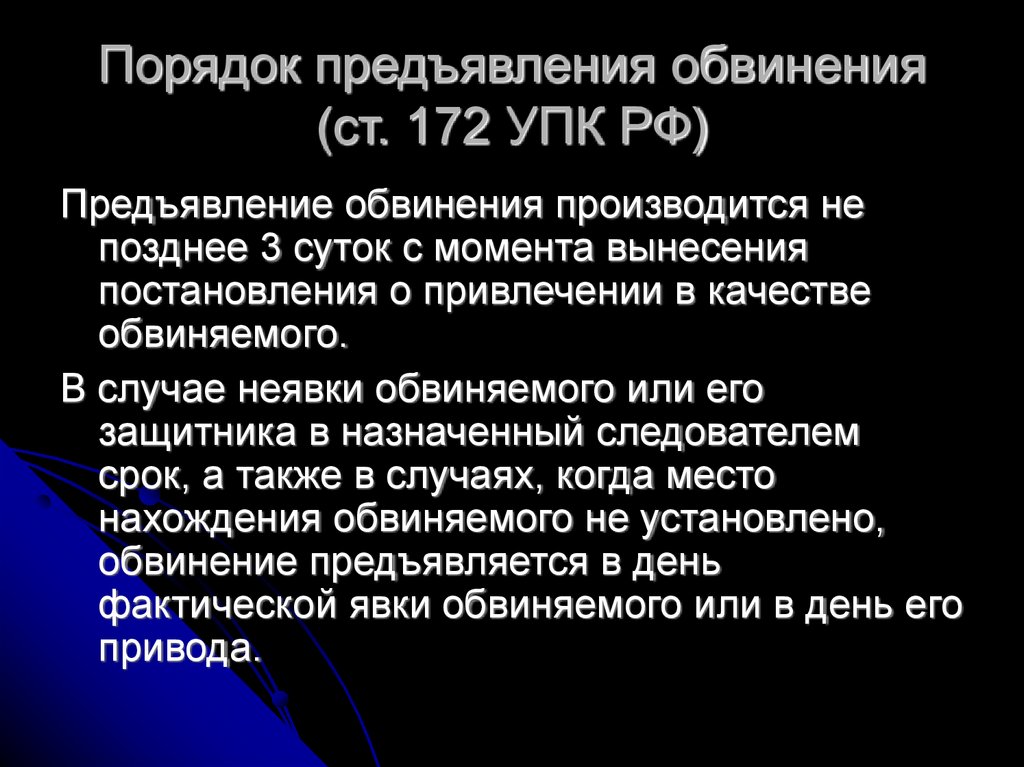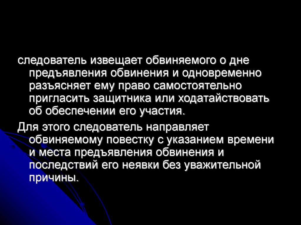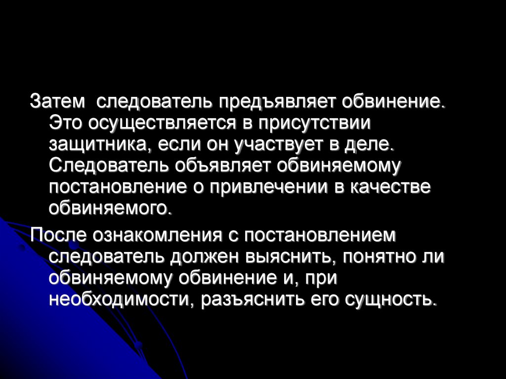 Затем следователь предъявляет обвинение.Это осуществляется в присутствии