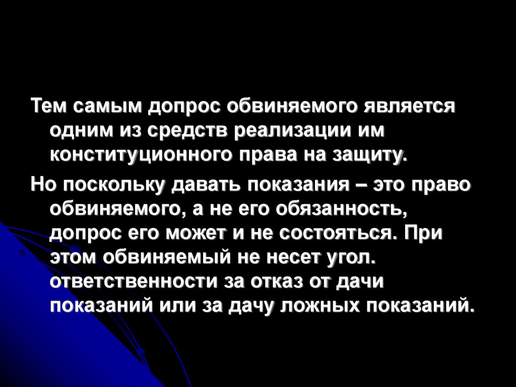 Тем самым допрос обвиняемого являетсяодним из средств реализации им