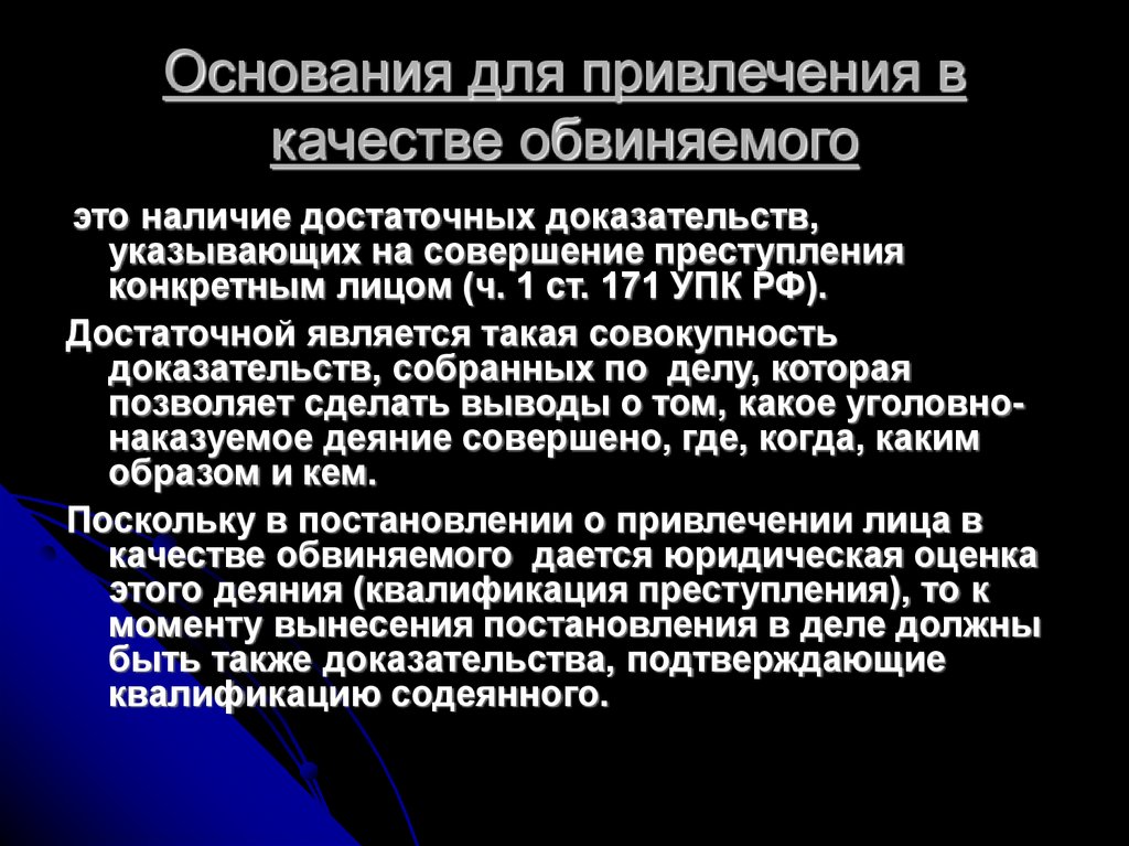является неотъемлемой составной частьюпривлечения в качестве обвиняемого.