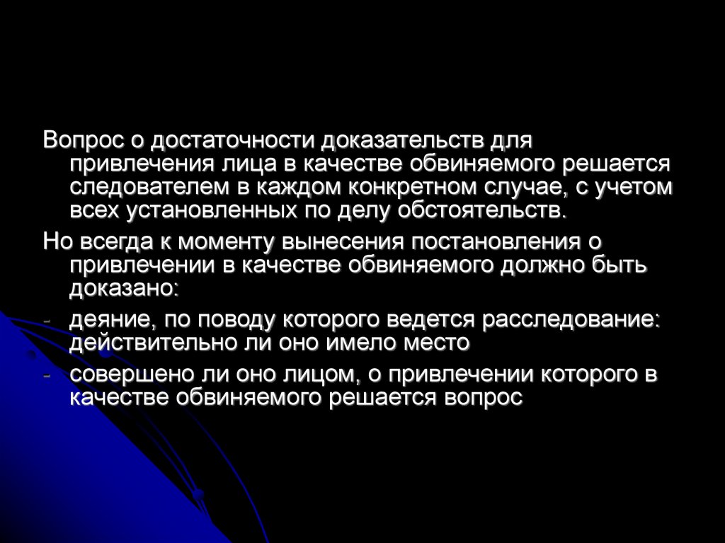 Вопрос о достаточности доказательств дляпривлечения лица в качестве обвиняемого решается