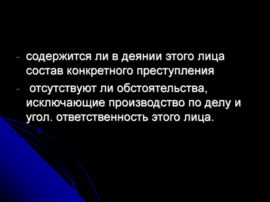 - содержится ли в деянии этого лицасостав конкретного преступления