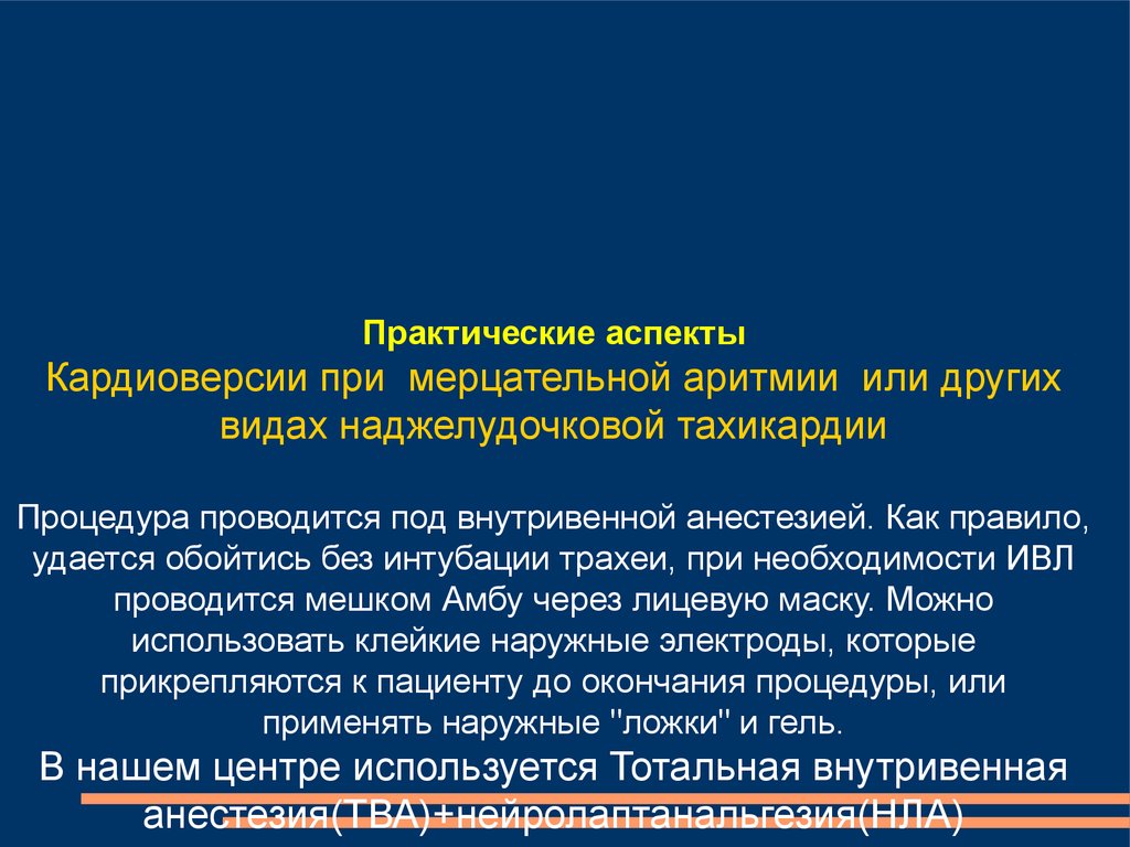 Практические аспектыКардиоверсии при мерцательной аритмии или других