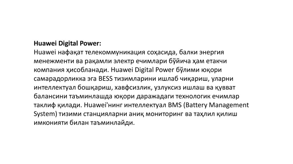 компания ҳисобланади. Huawei Digital Power бўлими юқори
