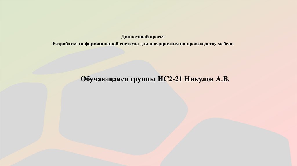 Дипломный проектРазработка информационной системы для предприятия по производству мебели