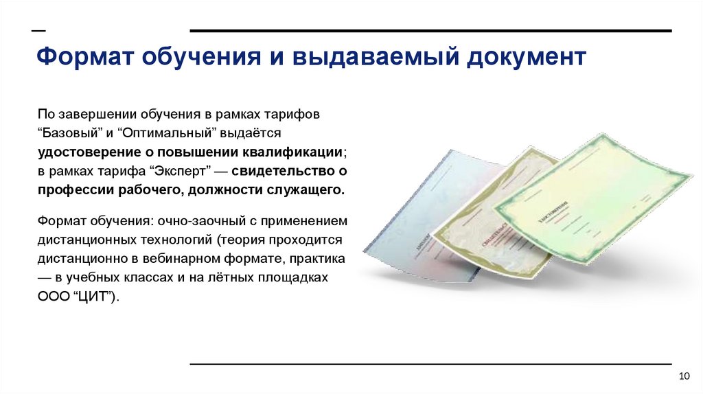 Формат обучения и выдаваемый документПо завершении обучения в рамках тарифов