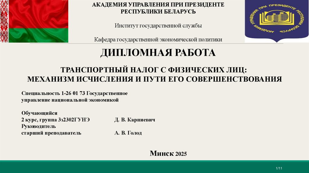 Направления совершенствования транспортного налогас физических лиц в Республике Беларусь