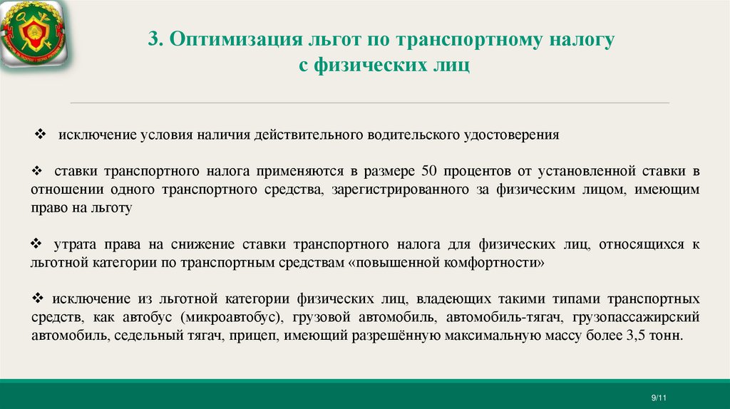 3. Оптимизация льгот по транспортному налогус физических лиц