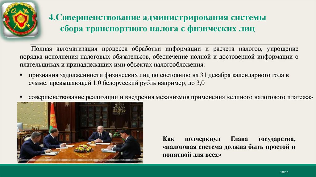 4.Совершенствование администрирования системысбора транспортного налога с физических лиц
