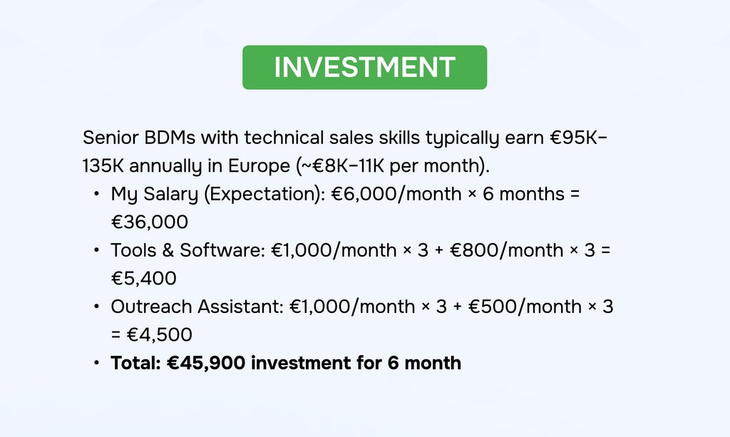 InvestmentSenior BDMs with technical sales skills typically earn €95K–
