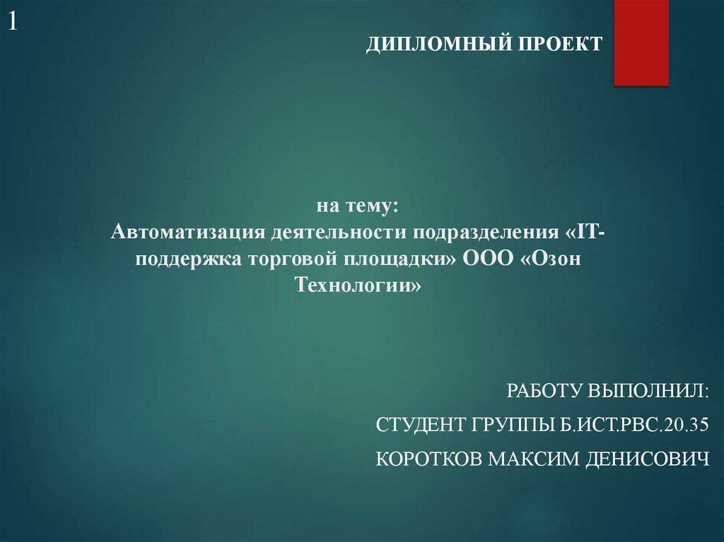1. на тему: Автоматизация деятельности подразделения «IT-поддержка торговой площадки» ООО «Озон Технологии»