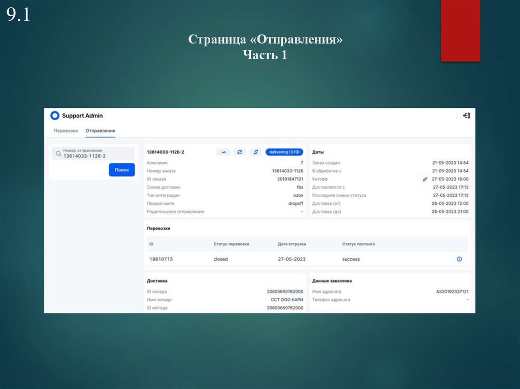 9.1Страница «Отправления»