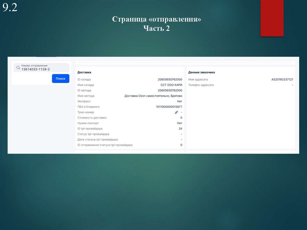 9.2Страница «отправления»