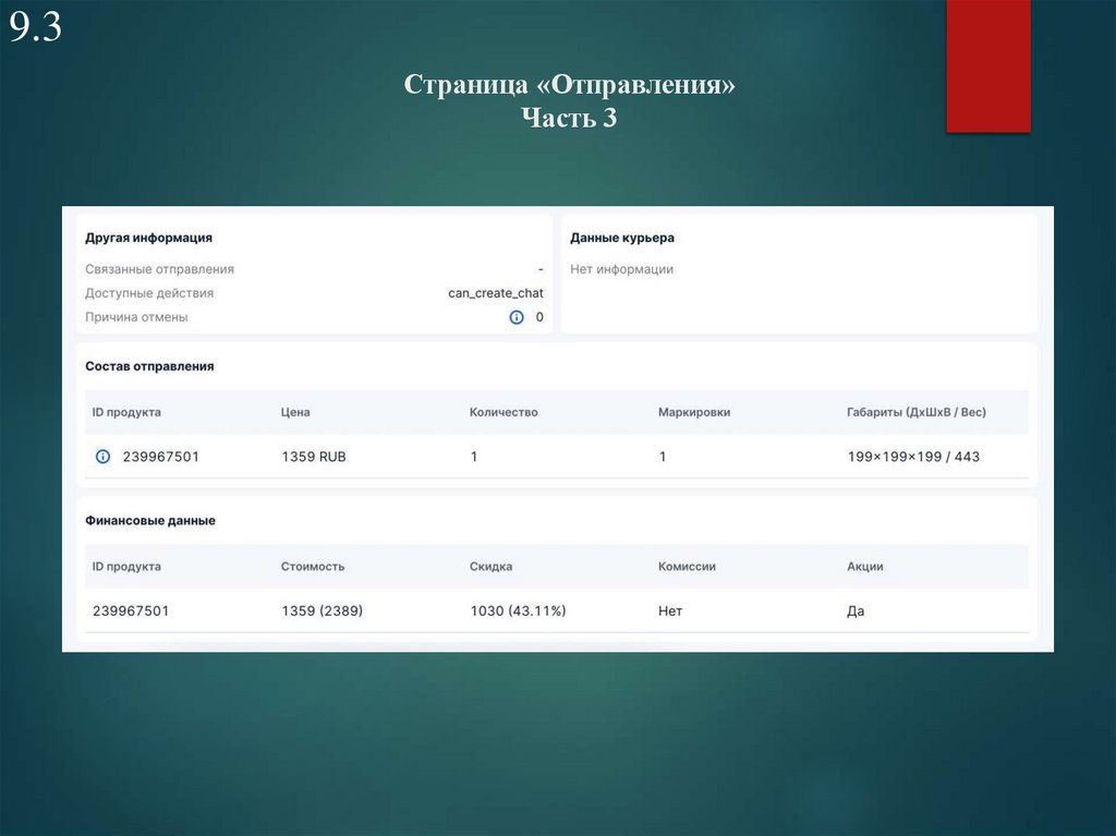 9.3Страница «Отправления»