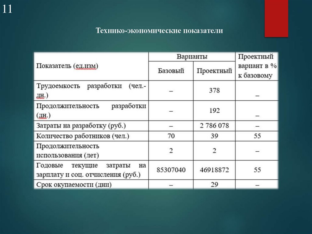 11Технико-экономические показатели