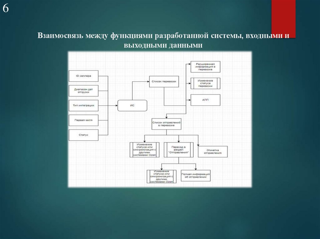 6. Взаимосвязь между функциями разработанной системы, входными и выходными данными