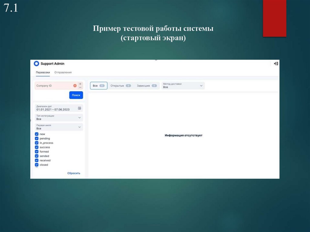 7.1Пример тестовой работы системы