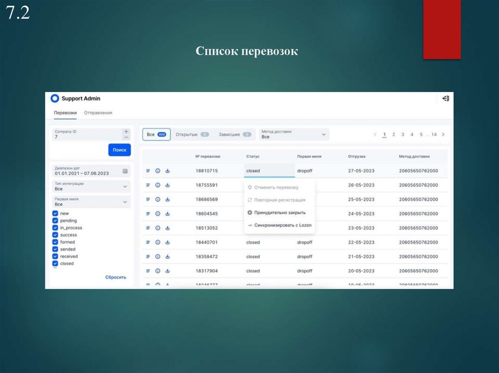 7.2Список перевозок