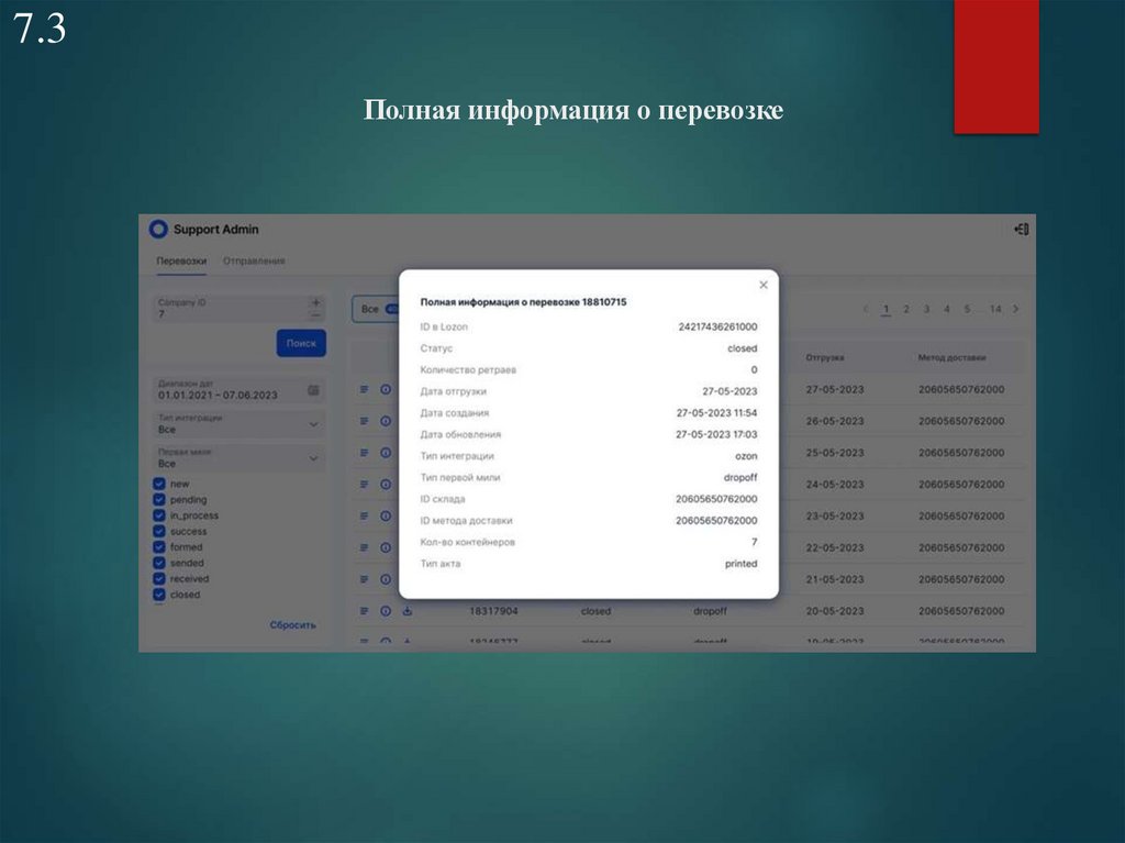 7.3Полная информация о перевозке