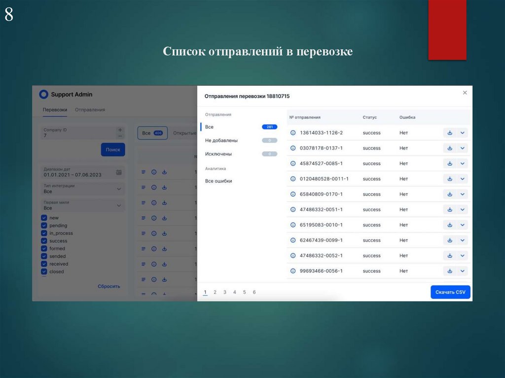 8Список отправлений в перевозке