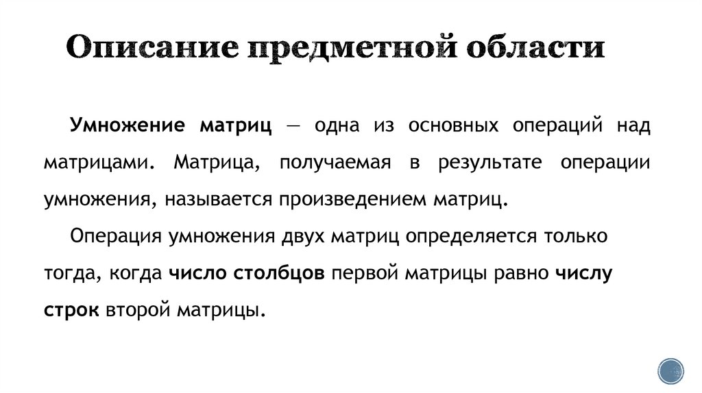 Умножение матриц — одна из основных операций надматрицами. Матрица, получаемая в результате операции