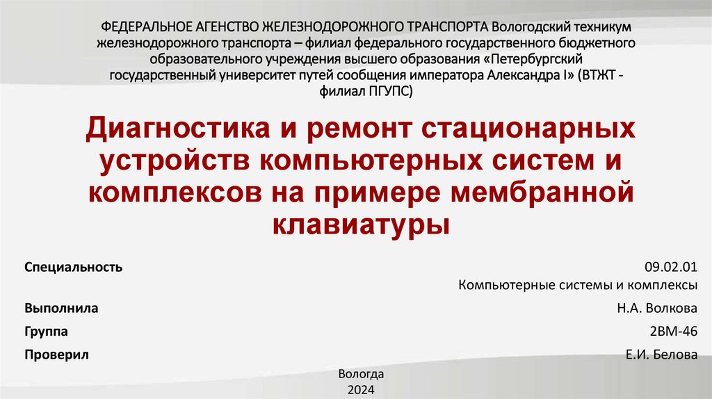 1. ФЕДЕРАЛЬНОЕ АГЕНСТВО ЖЕЛЕЗНОДОРОЖНОГО ТРАНСПОРТА Вологодский техникум железнодорожного транспорта – филиал федерального