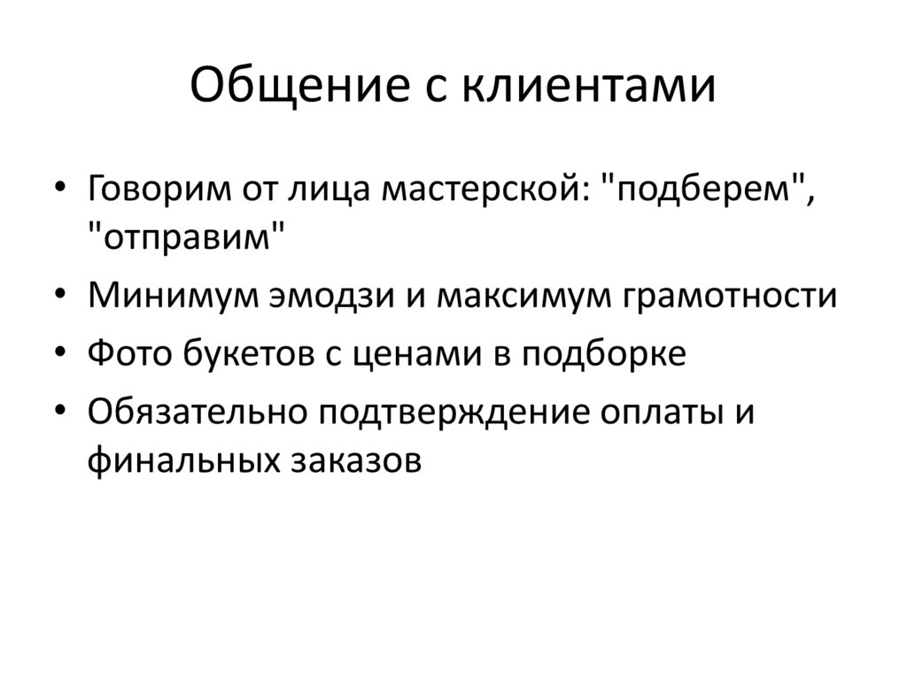 Общение с клиентами• Говорим от лица мастерской: "подберем",