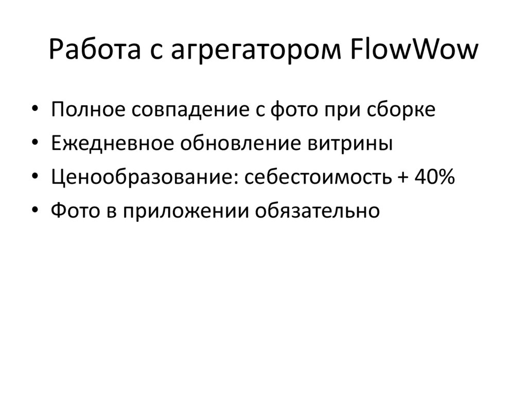 Работа с агрегатором FlowWow• Полное совпадение с фото при сборке