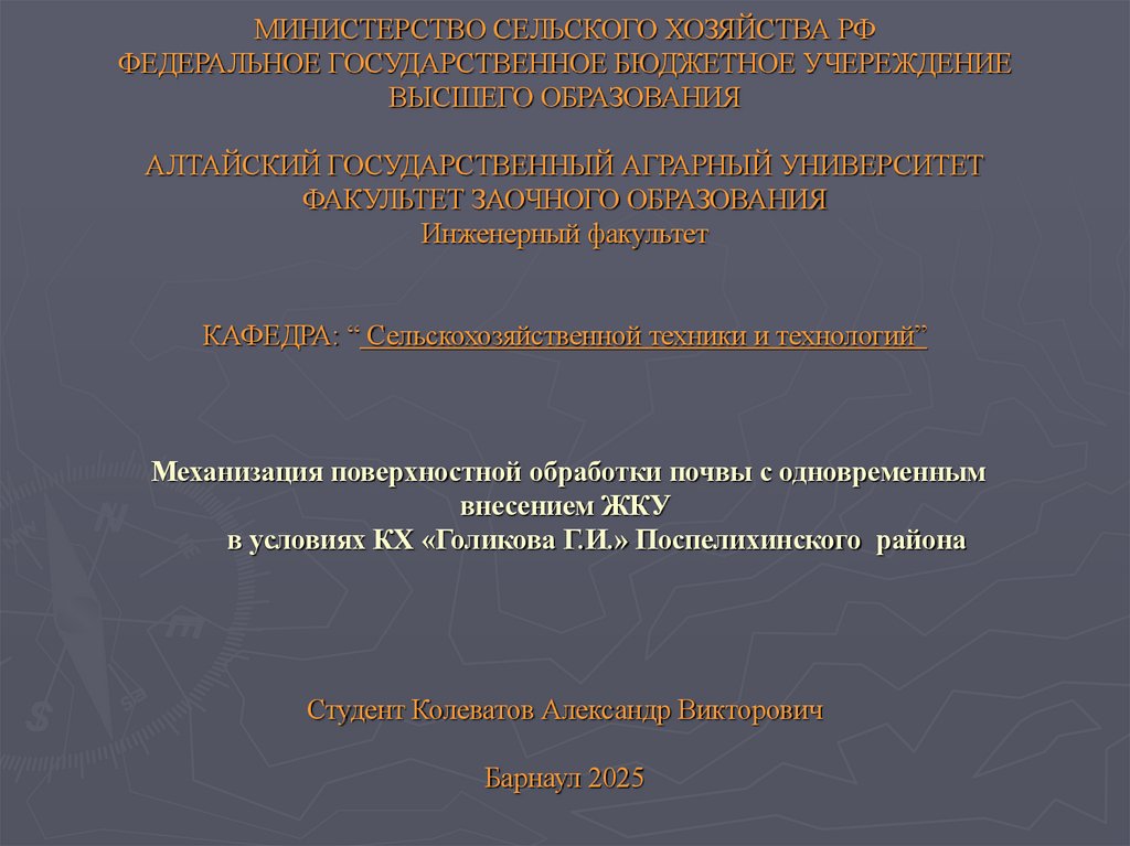 1. МИНИСТЕРСТВО СЕЛЬСКОГО ХОЗЯЙСТВА РФ ФЕДЕРАЛЬНОЕ ГОСУДАРСТВЕННОЕ БЮДЖЕТНОЕ УЧЕРЕЖДЕНИЕ ВЫСШЕГО ОБРАЗОВАНИЯ АЛТАЙСКИЙ