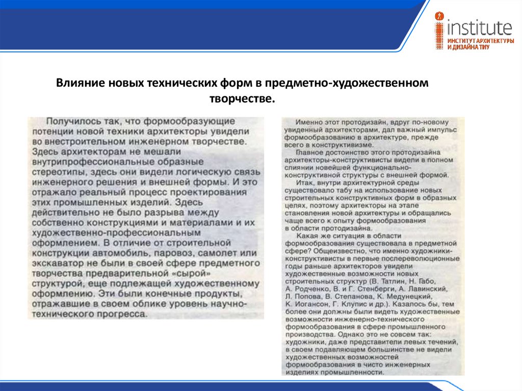 Влияние новых технических форм в предметно-художественномтворчестве.