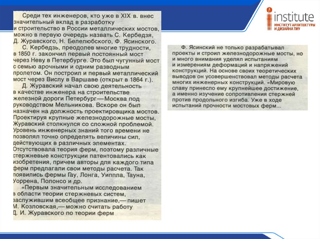 Российская школа инженеровмостостроителей ( Д.Журавский,Н.Белелюбский, Ф.Ясинский и др….)