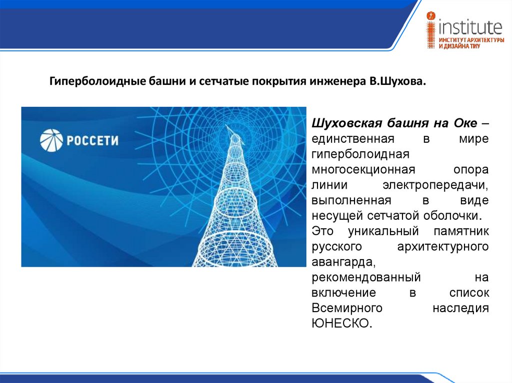 Гиперболоидные башни и сетчатые покрытия инженера В.Шухова.Шуховская башня на Оке –