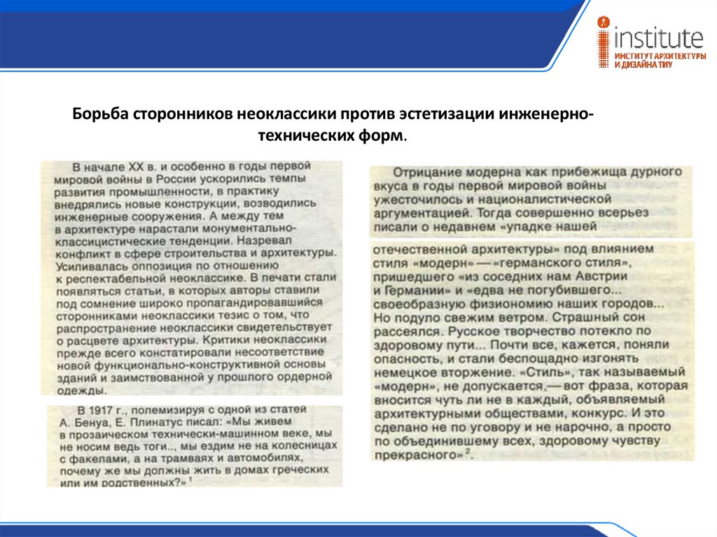 Борьба сторонников неоклассики против эстетизации инженернотехнических форм.10.