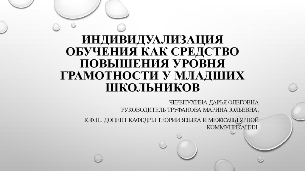 1. Индивидуализация обучения как средство повышения уровня грамотности у младших школьников