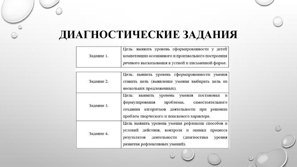 ДИАГНОСТИЧЕСКИЕ ЗАДАНИЯ5. Уровень сформированности у детей компетенции осознанного и произвольного построения речевого высказывания в устной и письменной