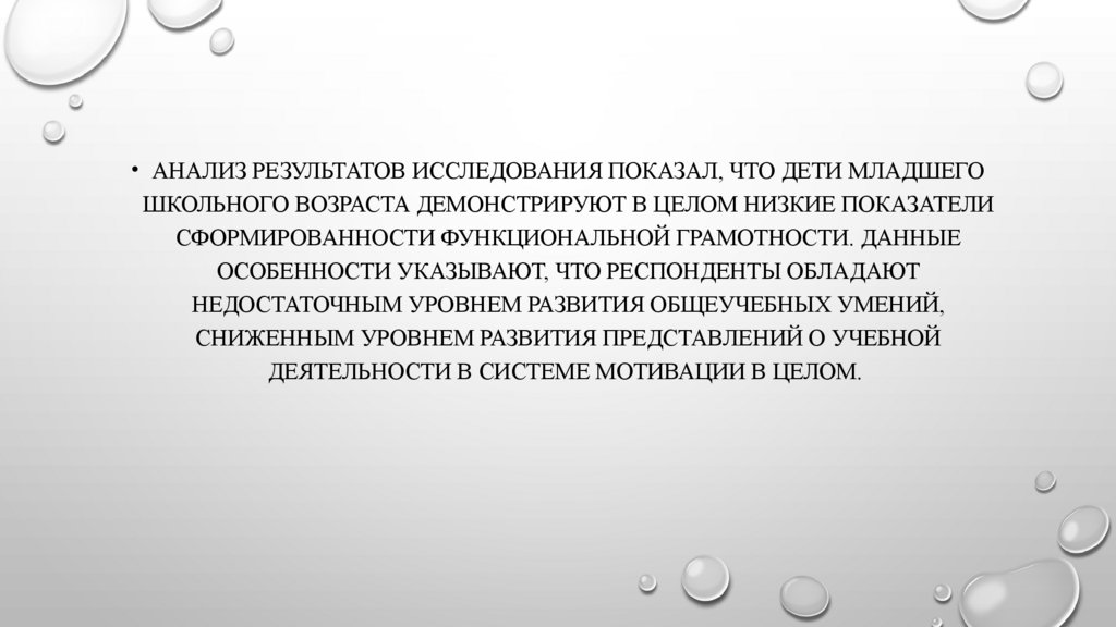 • АНАЛИЗ РЕЗУЛЬТАТОВ ИССЛЕДОВАНИЯ ПОКАЗАЛ, ЧТО ДЕТИ МЛАДШЕГОШКОЛЬНОГО ВОЗРАСТА ДЕМОНСТРИРУЮТ В ЦЕЛОМ НИЗКИЕ ПОКАЗАТЕЛИ