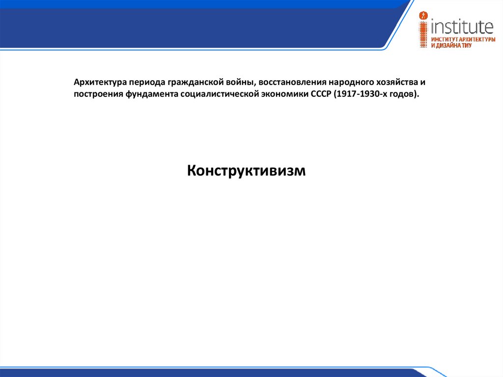 Архитектура периода Гражданской войны и раннего СССР. Лекция 4. Конструктивизм