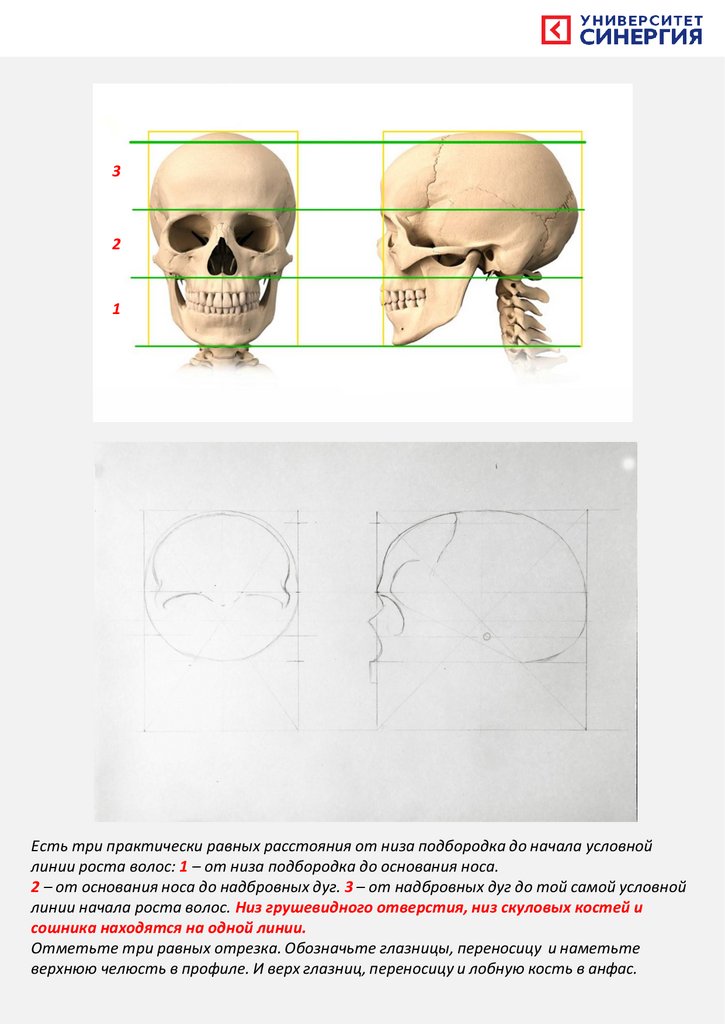 2 – от основания носа до надбровных дуг. 3 – от надбровных дуг до той самой условной