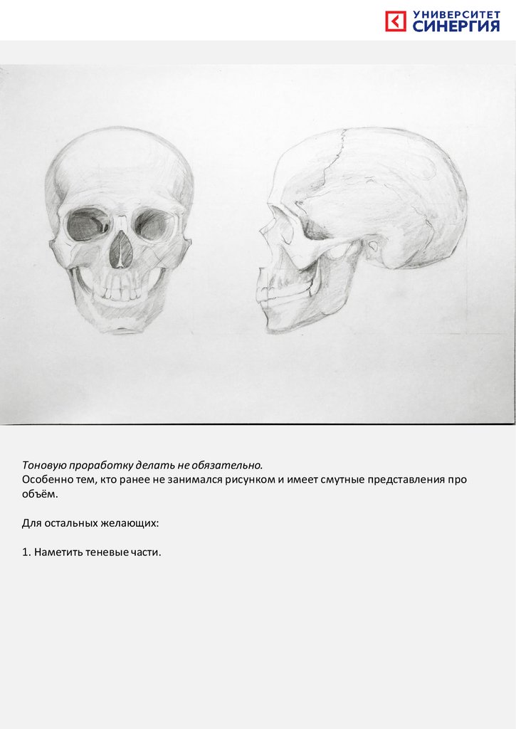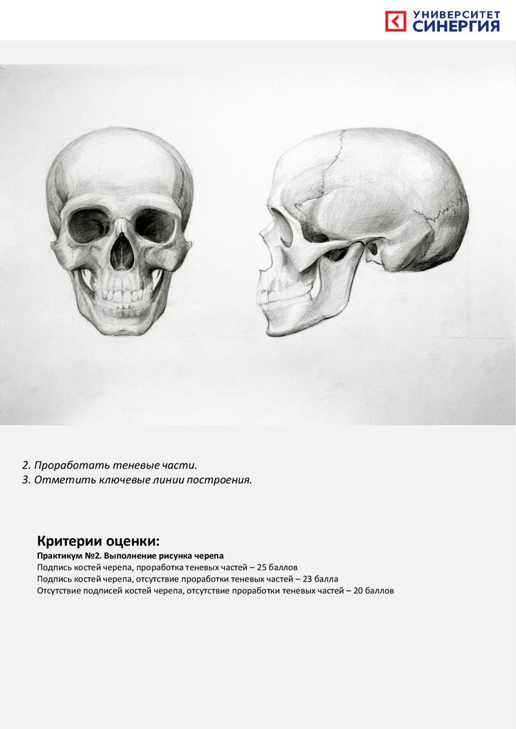 Подпись костей черепа, проработка теневых частей – 25 баллов