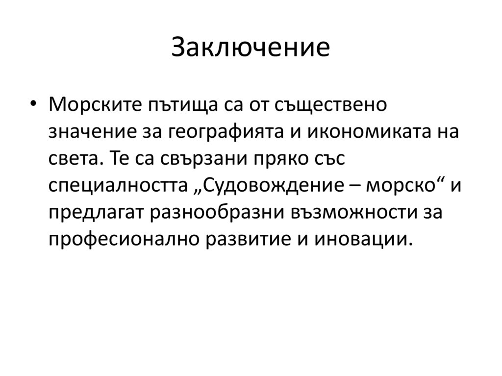 Заключение• Морските пътища са от съществено