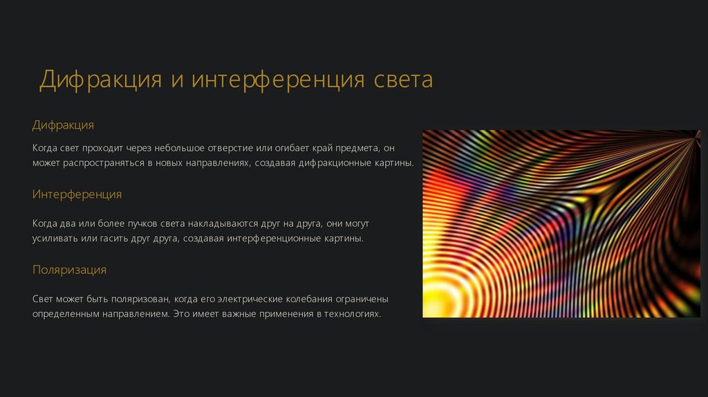 усиливать или гасить друг друга, создавая интерференционные картины.