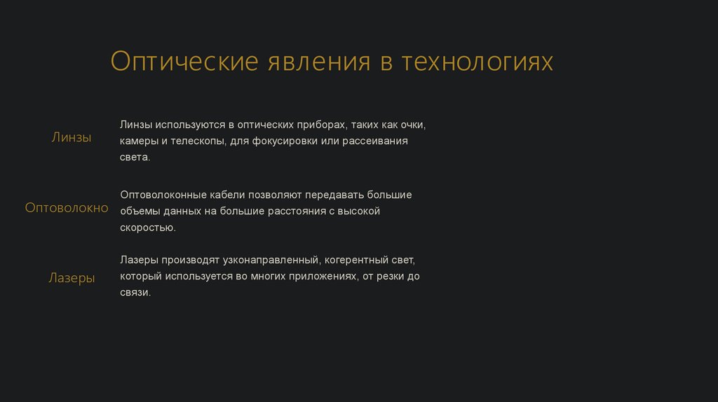 Оптические явления в технологияхЛинзы