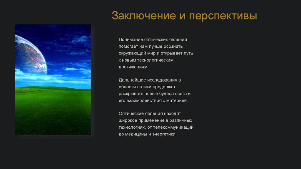 Заключение и перспективыПонимание оптических явлений