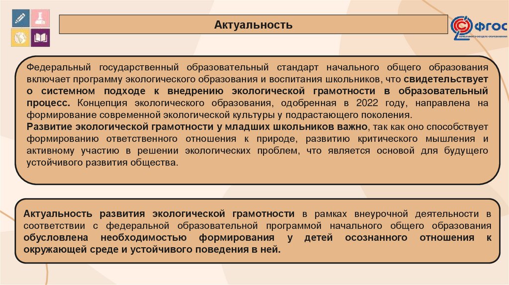 Актуальность развития экологической грамотности в рамках внеурочной деятельности в