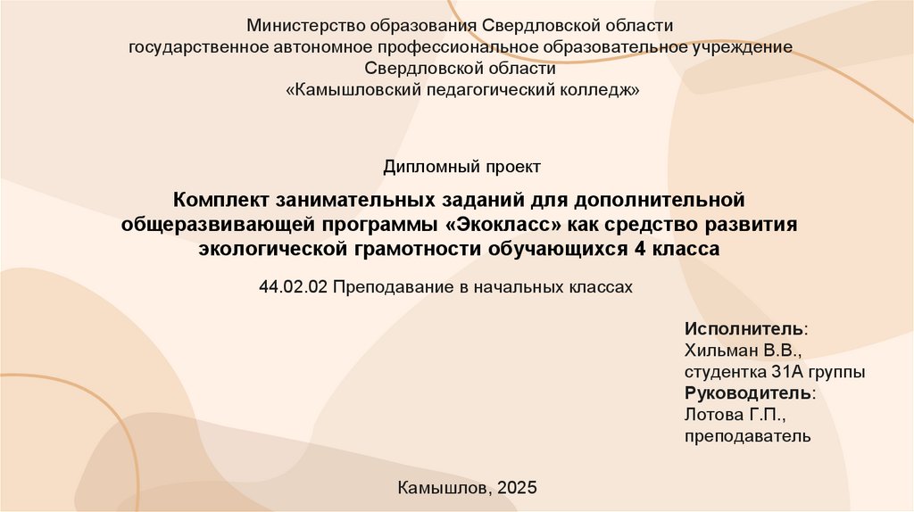 Комплект заданий для программы "Экокласс" как средство развития экологической грамотности учащихся 4 класса