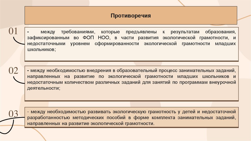 - между необходимостью развивать экологическую грамотность у детей и недостаточной