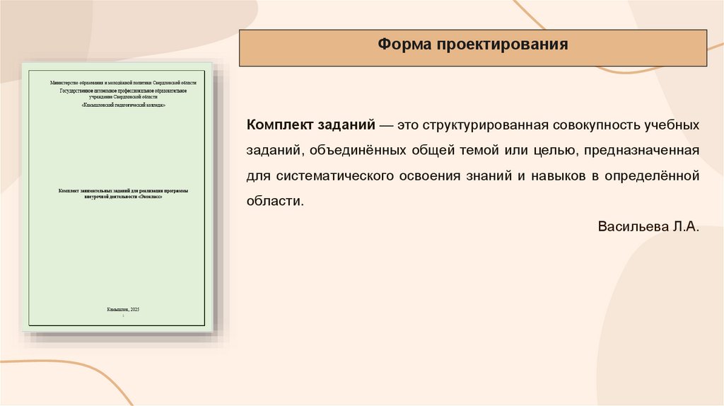 Форма проектированияКомплект заданий — это структурированная совокупность учебных
