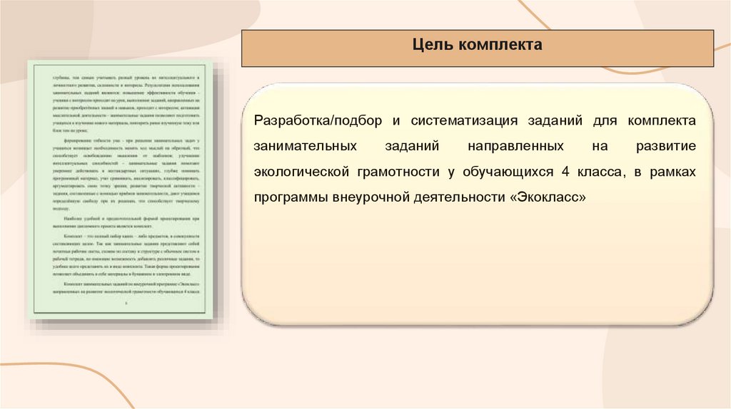 Цель комплектаРазработка/подбор и систематизация заданий для комплекта